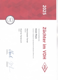 Bestätigung der VDH/KfT. Manchester Terrier Hobbyzucht "vom Trajan" für 2025